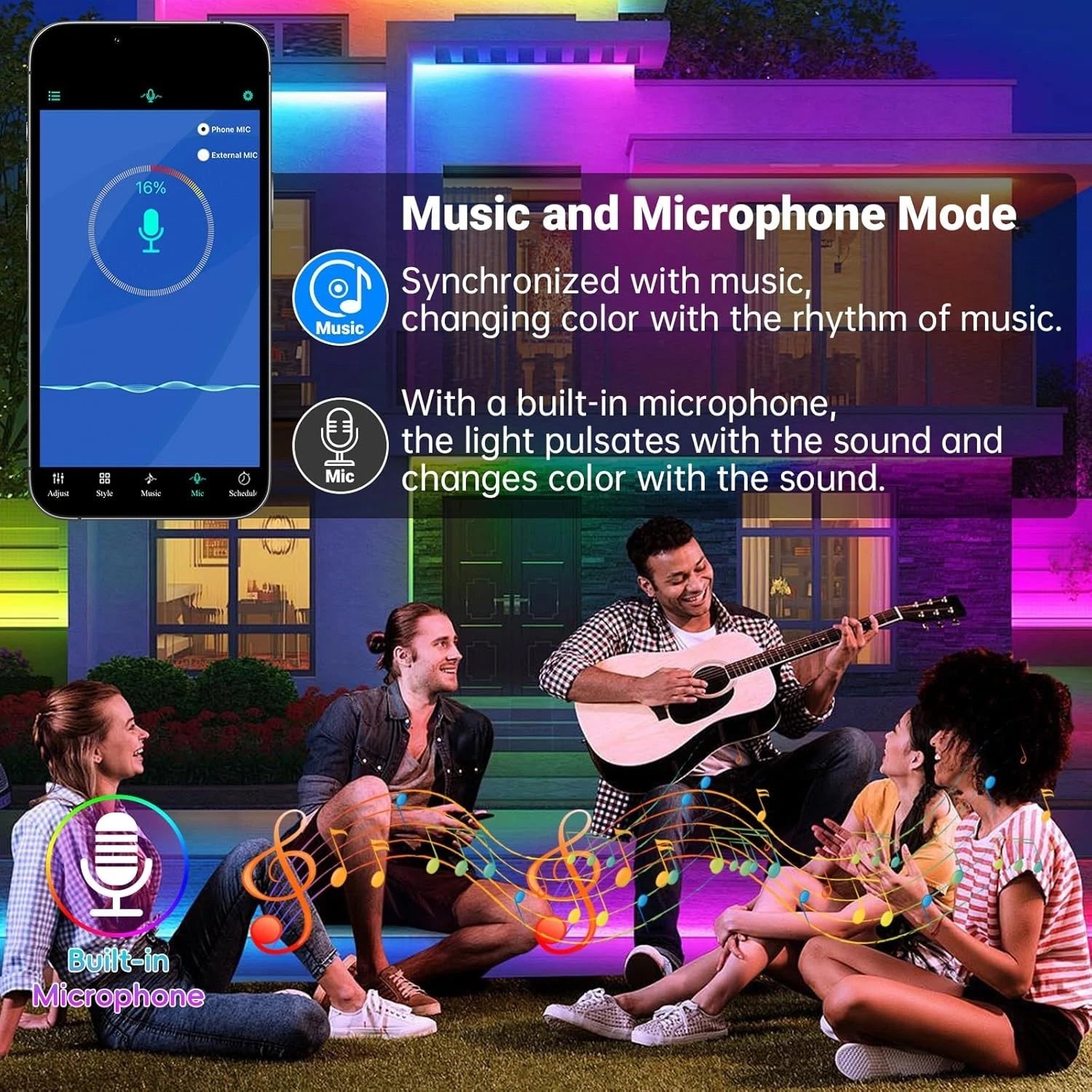 Festive RGB Lighting: Permanent outdoor lights offer 100 different scene modes, 18 million colors and adjustable brightness. Make your party more exciting and create romantic, relaxing and party atmosphere